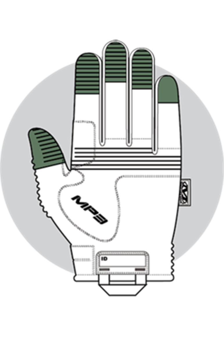 της παλάμης δύο περιοχών ενισχύει τις περιοχές υψηλής φθοράς και μειώνει το "μάζεμα" του υφάσματος κατά την χρήση των όπλων ή των