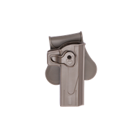 Με τον μεγάλο διακόπτη/μοχλό απελευθέρωσης/ασφάλισης το πιστόλι ταιριάζει σωστά και με ασφάλεια μέσα στην θήκη σε όλες τις απαιτητικές καταστάσεις. Η θήκη διατίθεται με ένα αξεσουάρ προσαρμογής σε ζώνη φάρδους μέχρι 42mm ή στην μέση των παντελονιών επιτρέποντας την καλυμμένη μεταφορά. Ο διακόπτης απελευθέρωσης/ασφάλισης διαθέτει επίστρωση καουτσούκ στο πίσω μέρος του για καλύτερο κράτημα και άνεση.