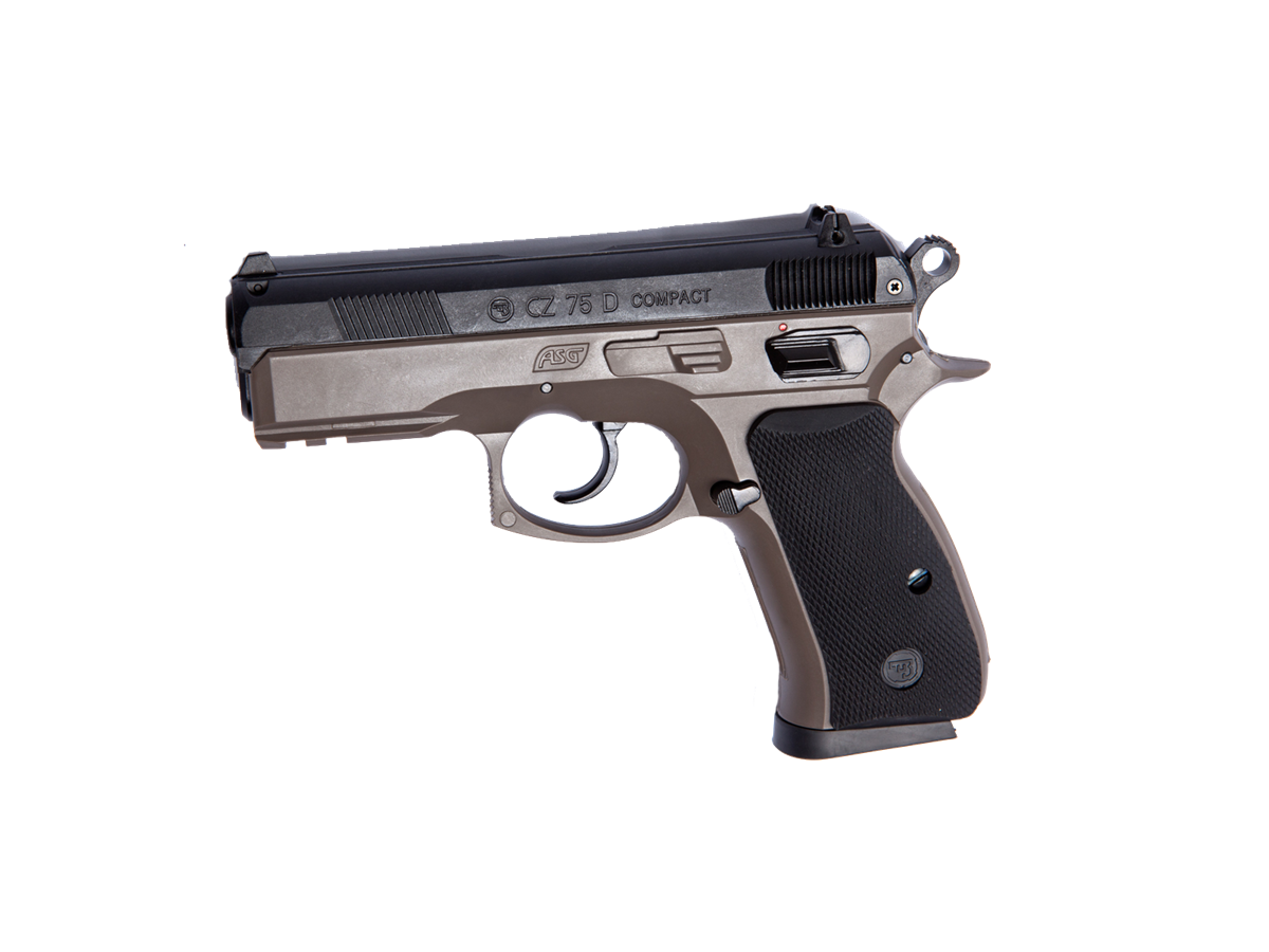 Πιστόλι Airsoft ελατηρίου, οπλιζόμενο χειροκίνητα για κάθε βολή. Όμοιο με το CZ 75D Compact και όλα τα σήματα στο κλείστρο του. Επιχειρησιακός διπλό χρωματισμός Μαύρο / Χακί.
