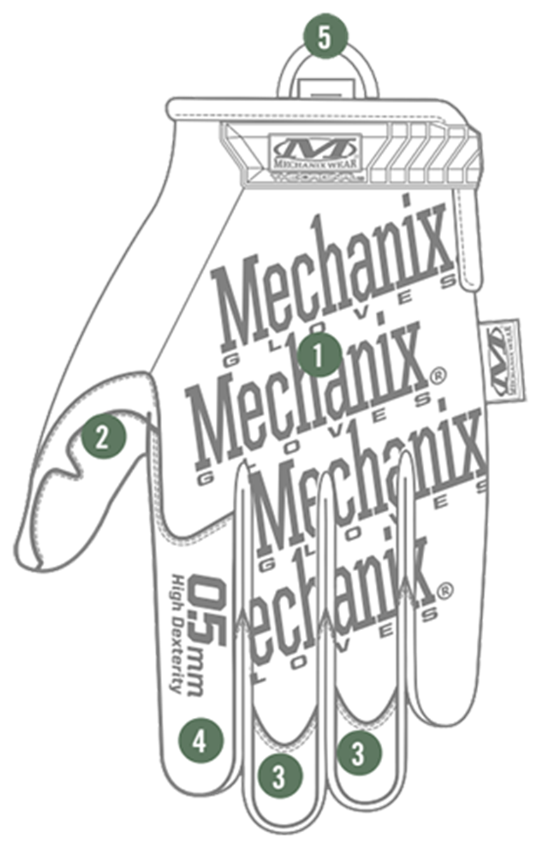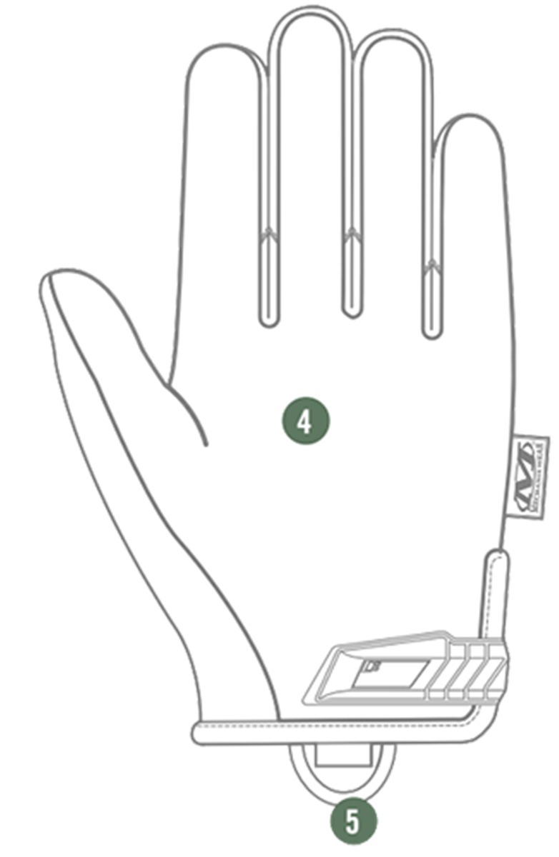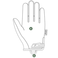 4. Υλικό υψηλής ευαισθησίας AX Suede ™ 0,5 χιλιοστών στην παλάμη και τα δάχτυλα.