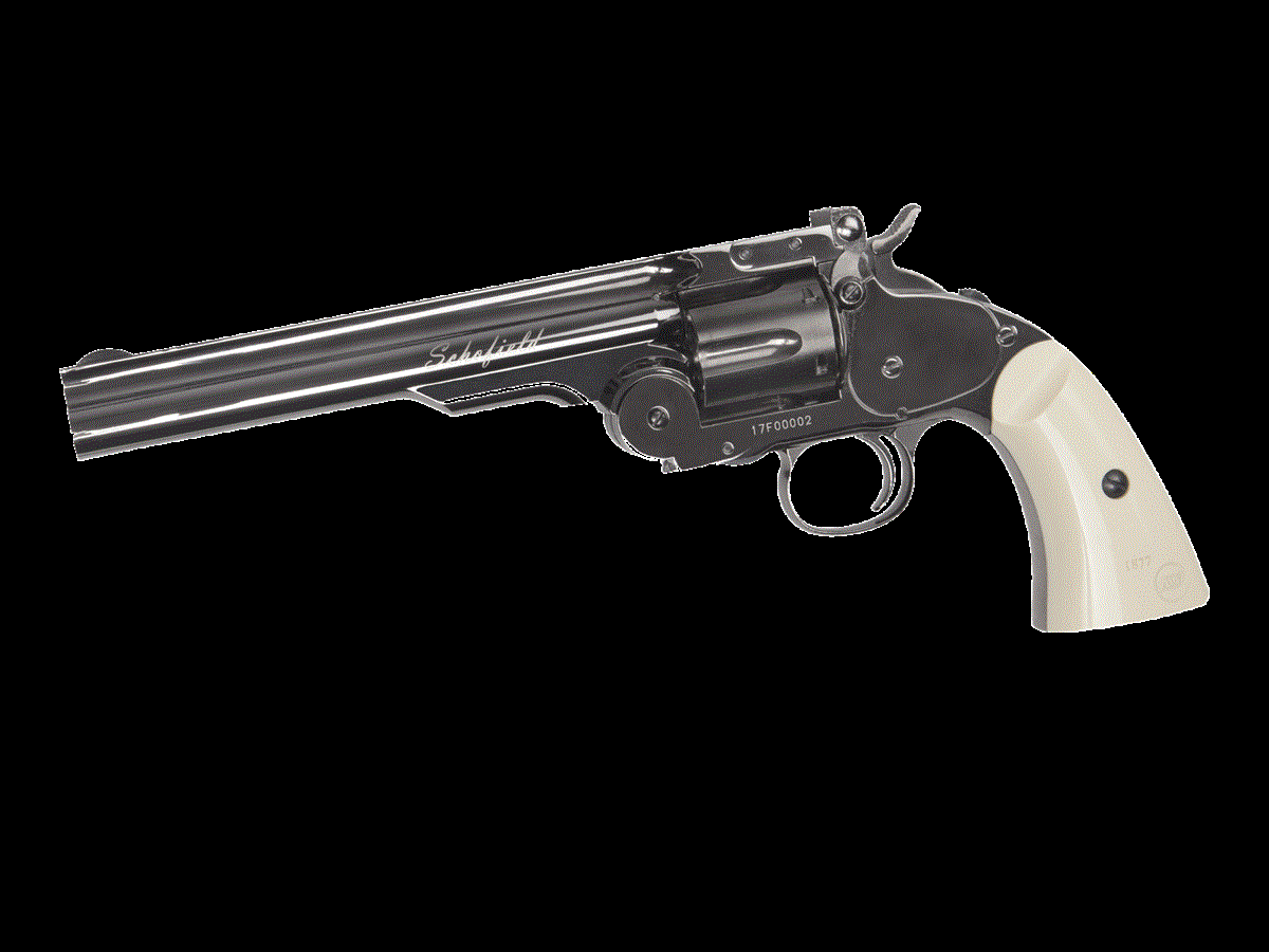 Αποκτήστε ένα κομμάτι της ιστορίας των όπλων, Αυτό το αεροβόλο περίστροφο που λειτουργεί με CO2 είναι απόλυτα ρεαλιστική απομίμηση του πολύ γνωστού περιστρόφου που έχει χρησιμοποιηθεί από μερικούς από του καλύτερους πιστολέρο της παλιάς "Άγριας Δύσης". Οι εικονικοί κάλυκες δέχονται από ένα στρόγγυλο ατσάλινο μπιλάκι (BB) τοποθετούνται στον μύλο του περιστρόφου αυτού με την σπαστή κάννη. Το περίστροφο λειτουργεί όπως ακριβώς και το πραγματικό συμπεριλαμβανομένου και του εξωλκέα που εξάγει γρήγορα τους άδειους κάλυκες για να επιτρέψει την γρήγορη επαναγέμιση.