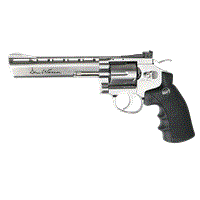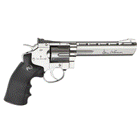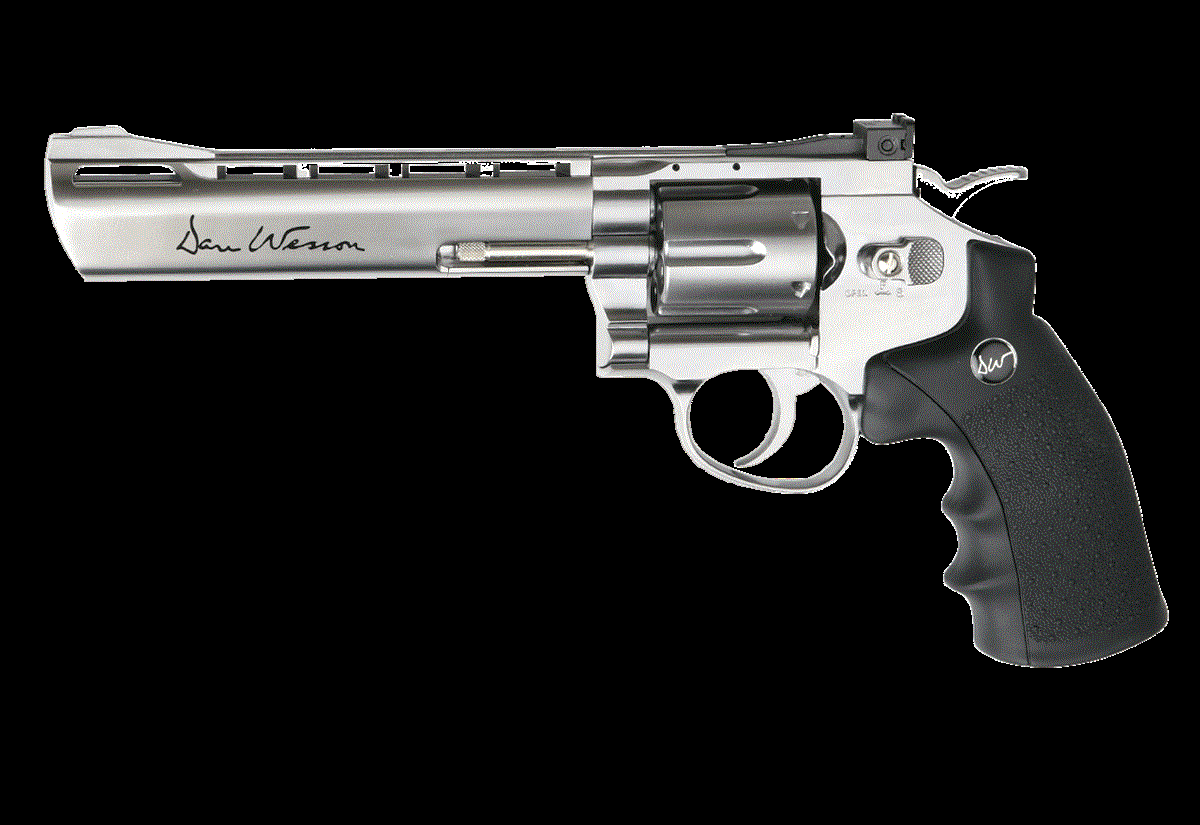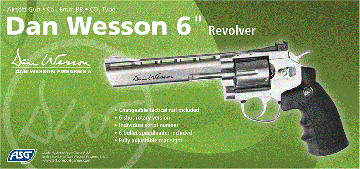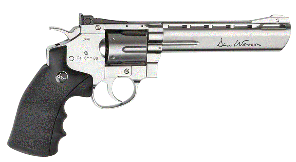 ΠΙΣΤΟΛΙ SOFT GNB, ASG, MB.S, Co2, Dan Wesson / 6" Silver Εντυπωσιακό και κομψό αυτό το Ασημένιο Περίστροφο με κάνη 6" και με άδεια από την DAN WESSON προσελκύει την προσοχή και προσφέρει μεγάλη συγκίνηση. Διαθέτει αυθεντικά σήματα και μοναδικό σειριακό αριθμό χτυπημένο στο πλαίσιο. Το περίστροφο διαθέτει σύστημα σκανδάλης διπλής ενέργειας και ρυθμιζόμενο πίσω σκοπευτικό για ακόμη περισσότερο ρεαλισμό και ακρίβεια. Το περίστροφο Dan Wesson είναι κατασκευασμένο από μέταλλο εκτός από την εργονομική λαβή που είναι κατασκευασμένη από σκληρό πλαστικό ABS. Η αμπούλα CO2 των 12gr αποθηκεύεται στην λαβή και είναι εύκολα προσβάσιμη με το συρόμενο κομμάτι της λαβής. Κάθε ένας από τους 6 κάλυκες κρατά από ένα μπιλάκι 6mm και τοποθετείται στον μεταλλικό κύλινδρο που περιστρέφεται μετά από κάθε βολή. Συνοδεύεται από ταχυγεμιστήρα, προσαρμόσιμη ράγα προσάρτισης εξαρτημάτων και έξι (6) κάλυκες.