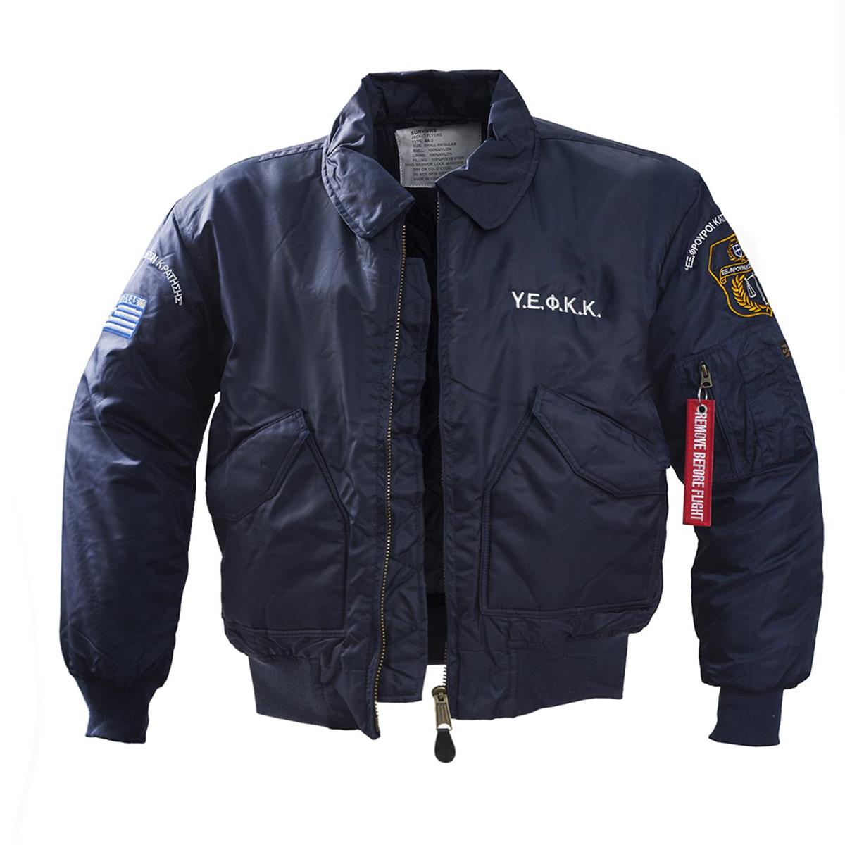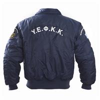 Φλαι τζάκετ ΥΕΦΚΚ με κέντημα μπρος πίσω και στα μανίκια Χρώματα μαύρο, μπλε Με λαδί ή λευκά κεντήματα Δώρο μπρελόκ ...