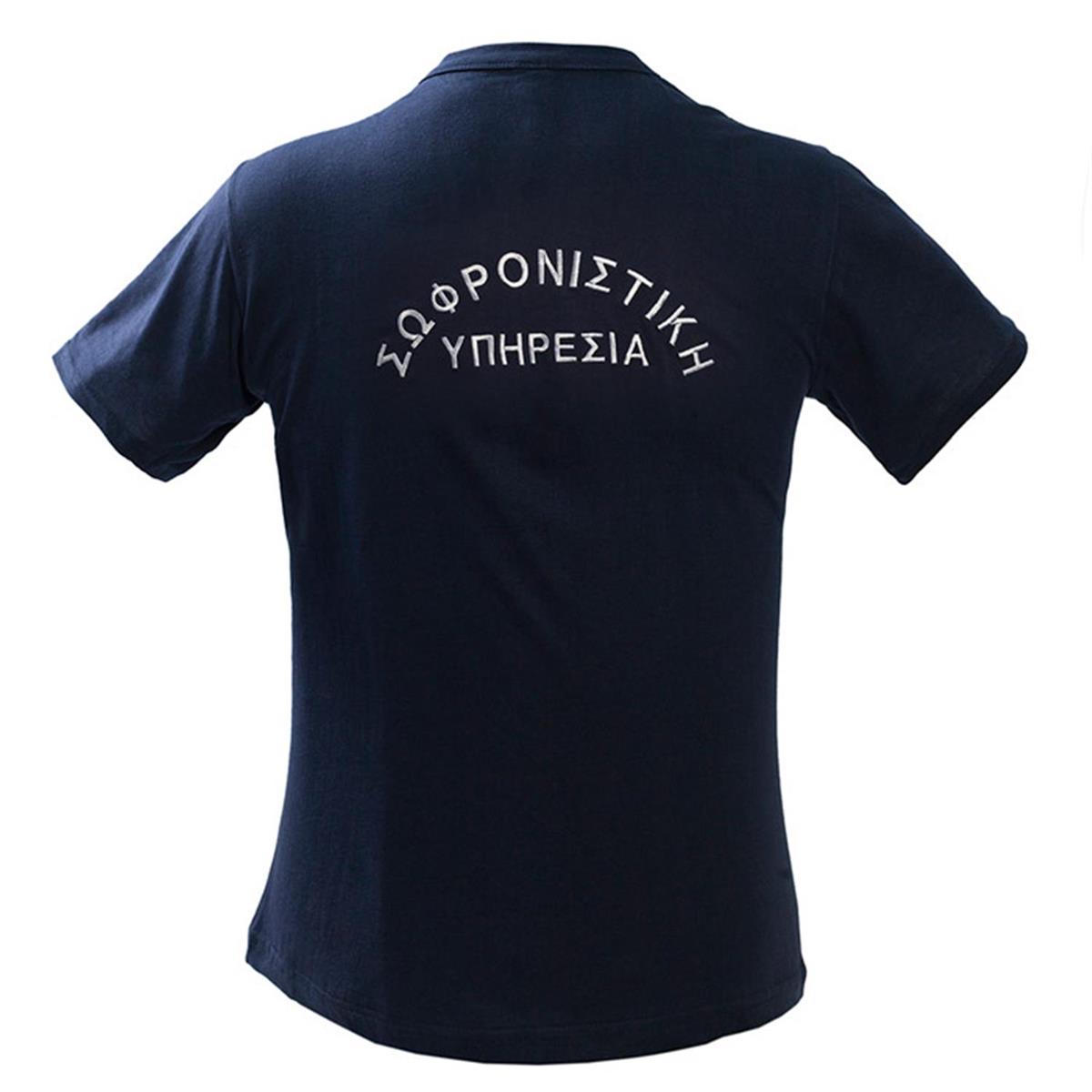 Μπλουζάκι μακό βαμβακερό 100% με κέντημα Σωφρονιστική Υπηρεσία μικρό μπρος αριστερά και το σήμα της υπηρεσίας δεξιά καθώς και μεγάλο Σωφρονιστική Υπηρεσία πίσω.