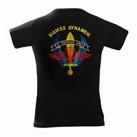 Mπλουζάκια με μεγάλες κεντητές στρατιωτικές παραστάσεις στην πλάτη με σήμα μπροστά και σημαία στο μανίκι ΕΙΔΙΚΕΣ ΔΥΝΑΜΕΙΣ Ο Τολμών Νικά (Καρχαρίας – Σκάφος).