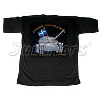 Mπλουζάκια με μεγάλες κεντητές στρατιωτικές παραστάσεις στην πλάτη με σήμα μπροστά και σημαία στο μανίκι. ΔΥΝΑΜΕΙΣ ΤΕΘΩΡΑΚΙΣΜΕΝΩΝ (Τανκ – Σημαία) σε χρώματα μαύρο, λαδί.