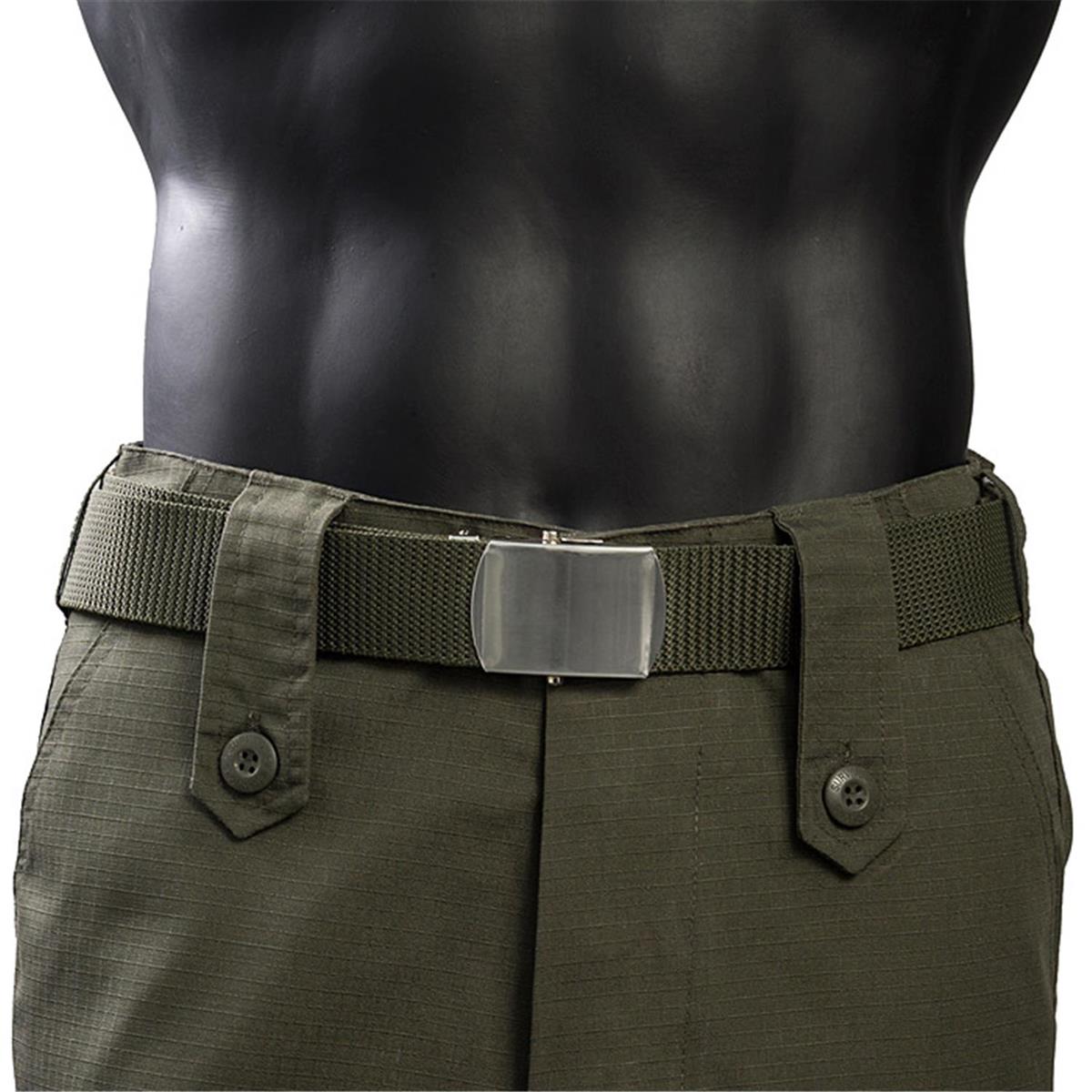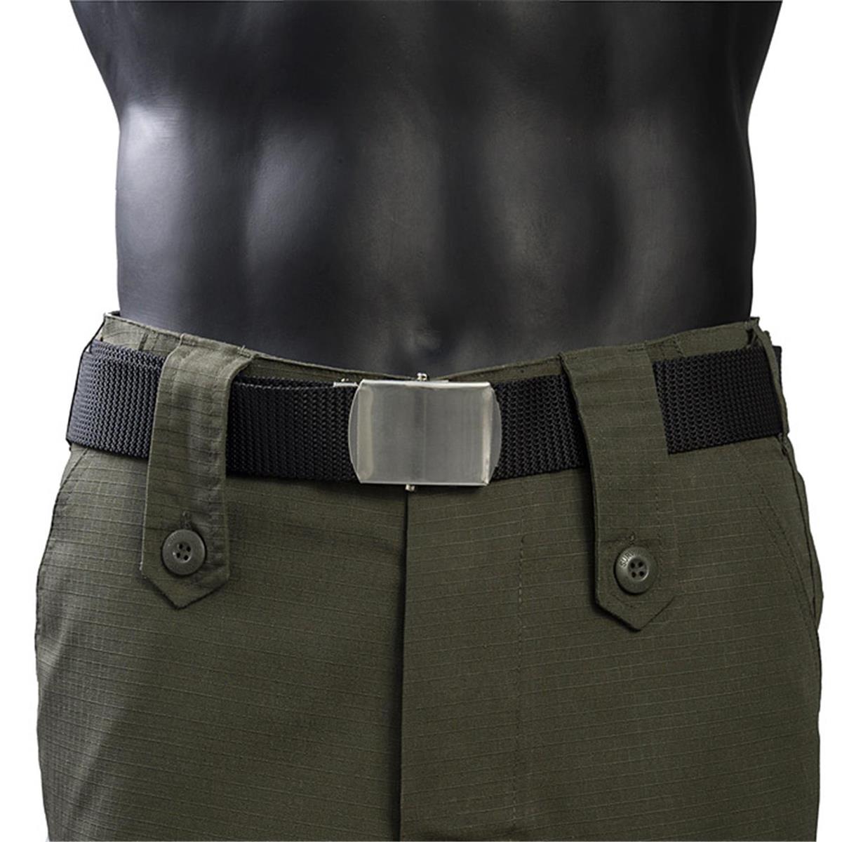 Ζώνη στενή (40αρα) που περνάει από τις θηλιές του στρατιωτικού παντελονιού. Με χρυσή ή ασημί πόρπη. Αυξομειώνει ...