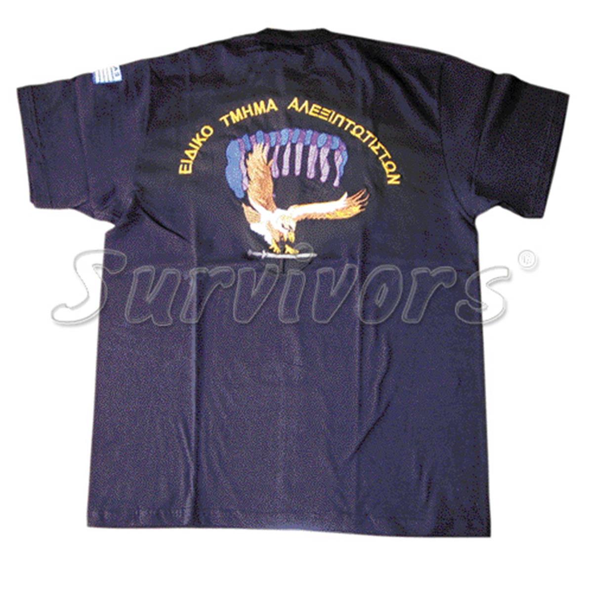 Mπλουζάκια με μεγάλες κεντητές στρατιωτικές παραστάσεις στην πλάτη με σήμα μπροστά και σημαία στο μανίκι ΤΜΗΜΑ ΑΛΕΞΙΠΤΩΤΙΣΤΩΝ (Αετός – Ξίφος).