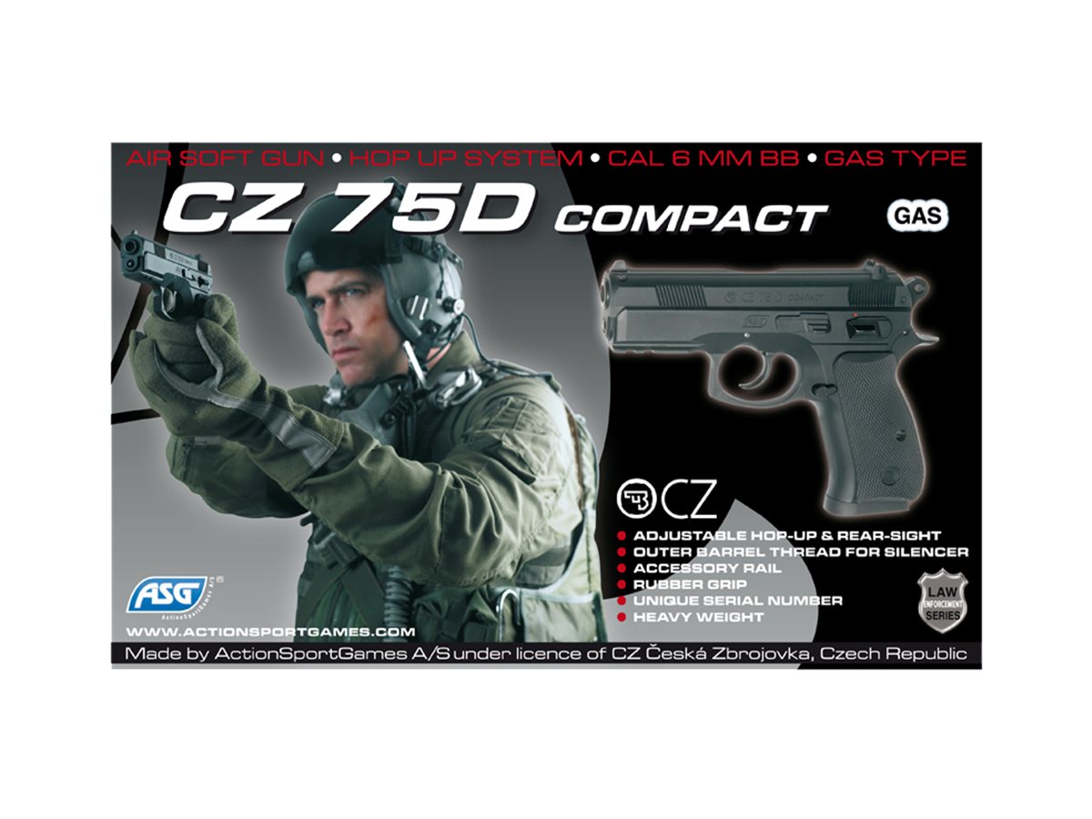 To CZ75 Compact είναι ένα ημιαυτόματο πιστόλι Airsoft που λειτουργεί με προωθητικό αέριο που αποθηκεύεται στην γεμιστήρα του. Έχει μοντέρνα επιχειρησιακή σχεδίαση και ενσωματώνει χαρακτηριστικά όπως, λαστιχένια πλακίδια λαβής για καλύτερο έλεγχο, προστατευτική βάση κάτω από την γεμιστήρα και μία ράγα προσάρτησης εξαρτημάτων κάτω από την κάνη. Το Hop Up μπορεί να ρυθμιστεί για μεγαλύτερη ακρίβεια και η γεμιστήρα του δέχεται 15 BB's