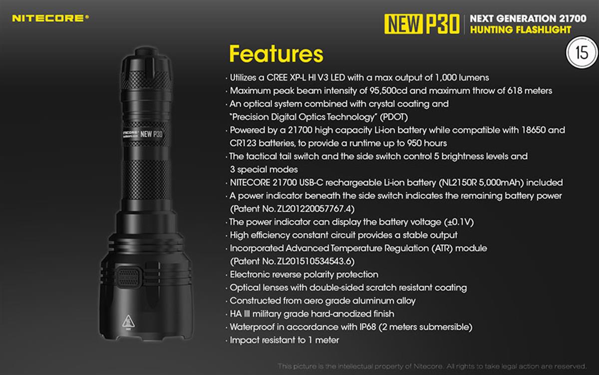 NITECORE NEW P30 . Φακός LED νέας γενιάς που λειτουργεί με μπαταρία 21700.