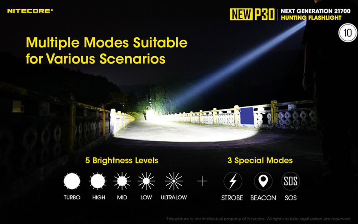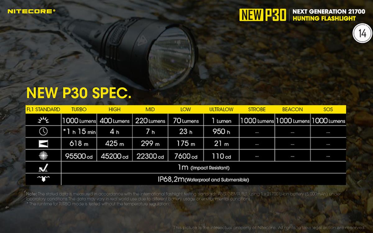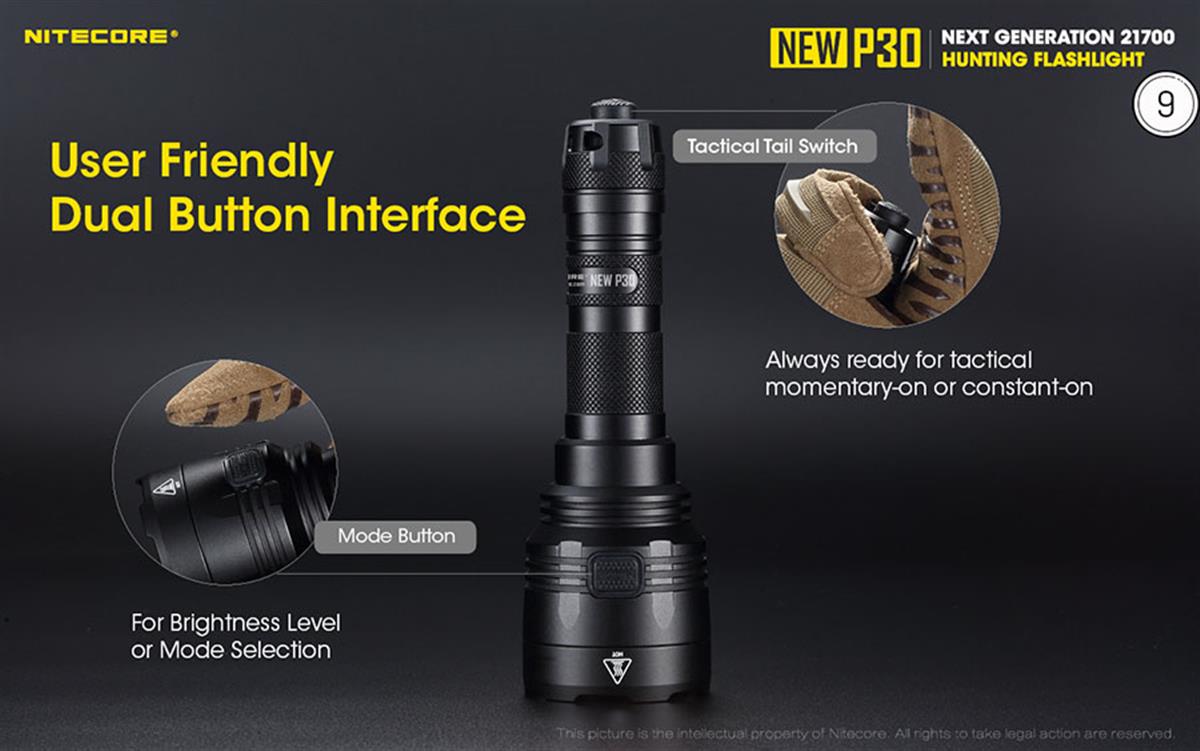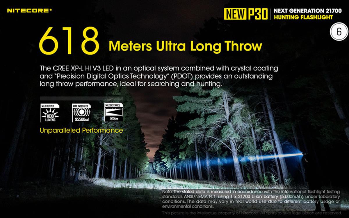 NITECORE NEW P30 Φακός LED ,νέας γενιάς που λειτουργεί με μπαταρία 21700. Εξαιρετικά μεγάλη απόσταση φωτισμού
