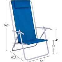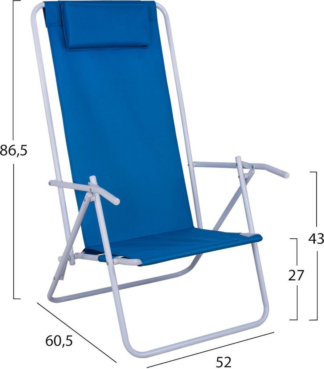 Καρεκλάκι παραλίας πτυσσόμενο μεταλλικό 2 θέσεων, με ψηλή πλάτη και μπλε ύφασμα.
