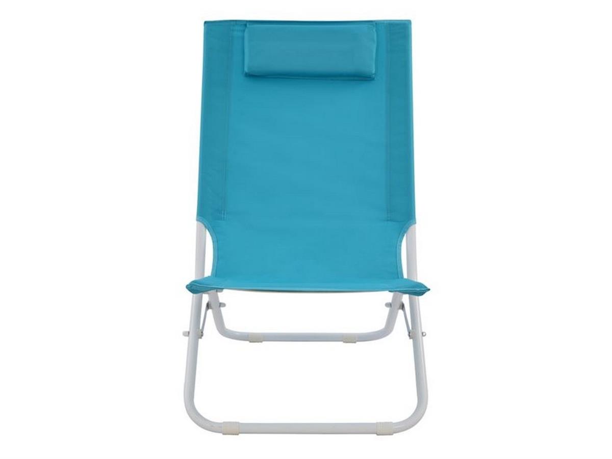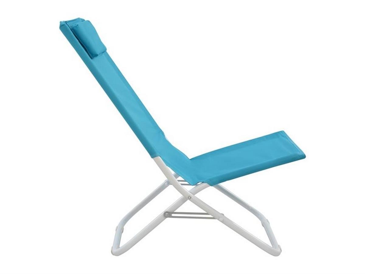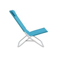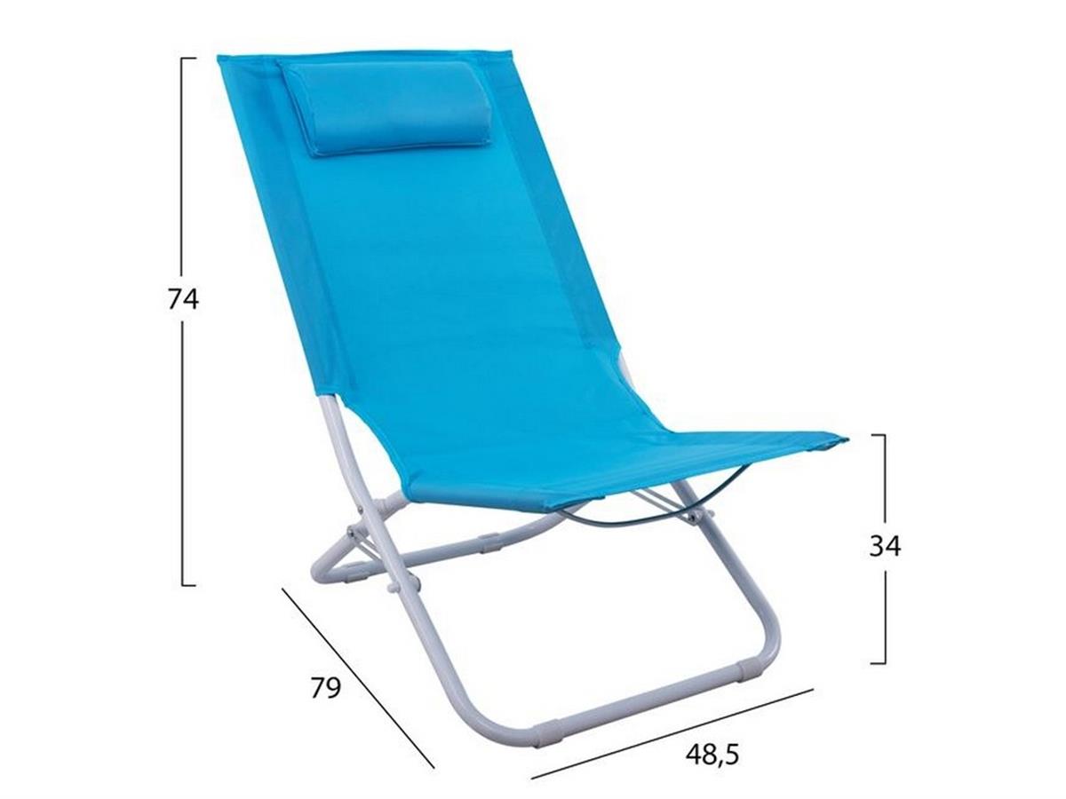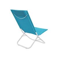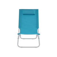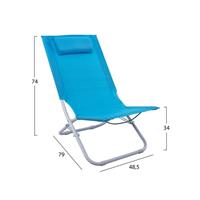 Καρεκλάκι παραλίας μεταλλικό με σιέλ ύφασμα και ψηλή πλάτη.