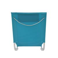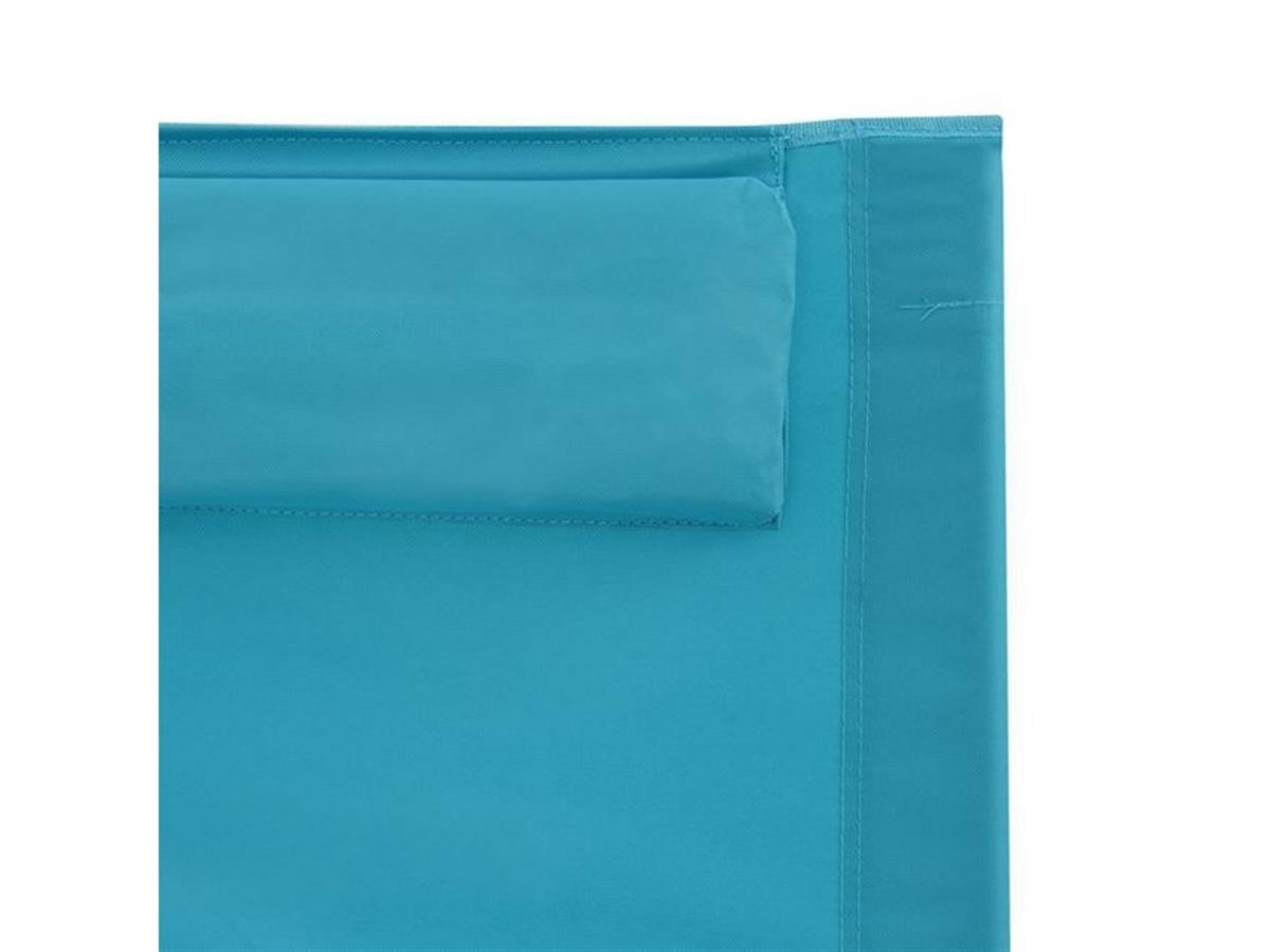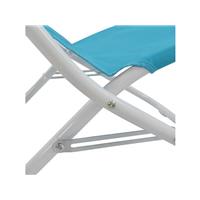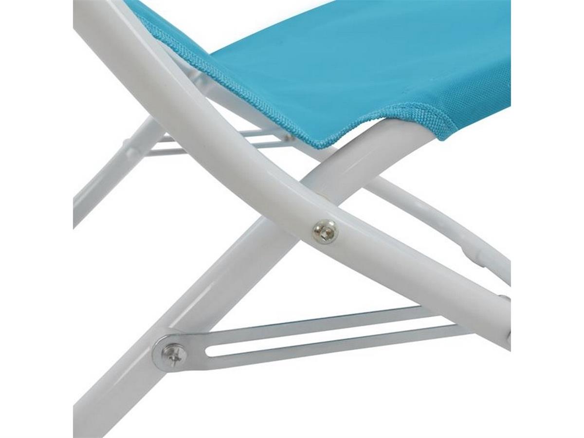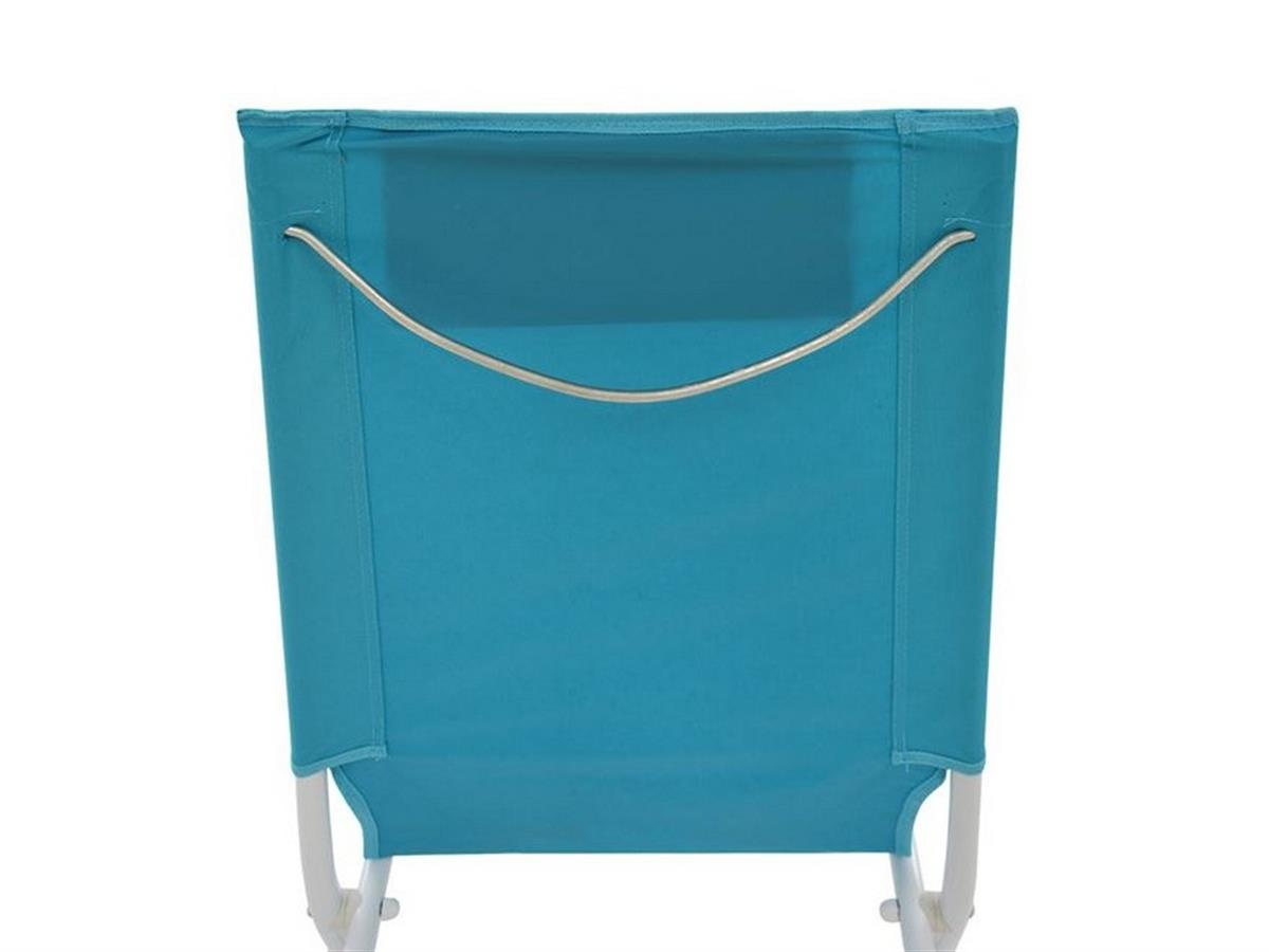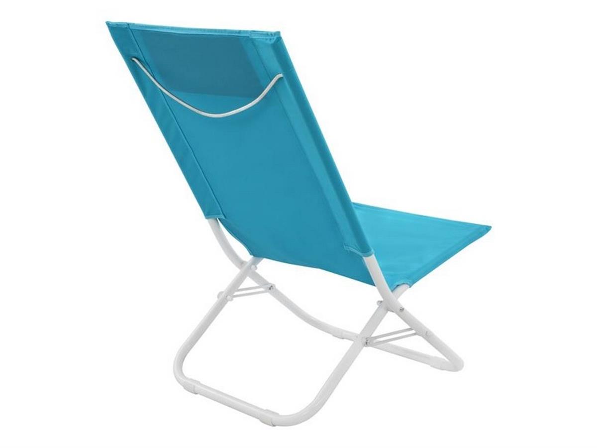 Καρεκλάκι παραλίας μεταλλικό με σιέλ ύφασμα και ψηλή πλάτη.