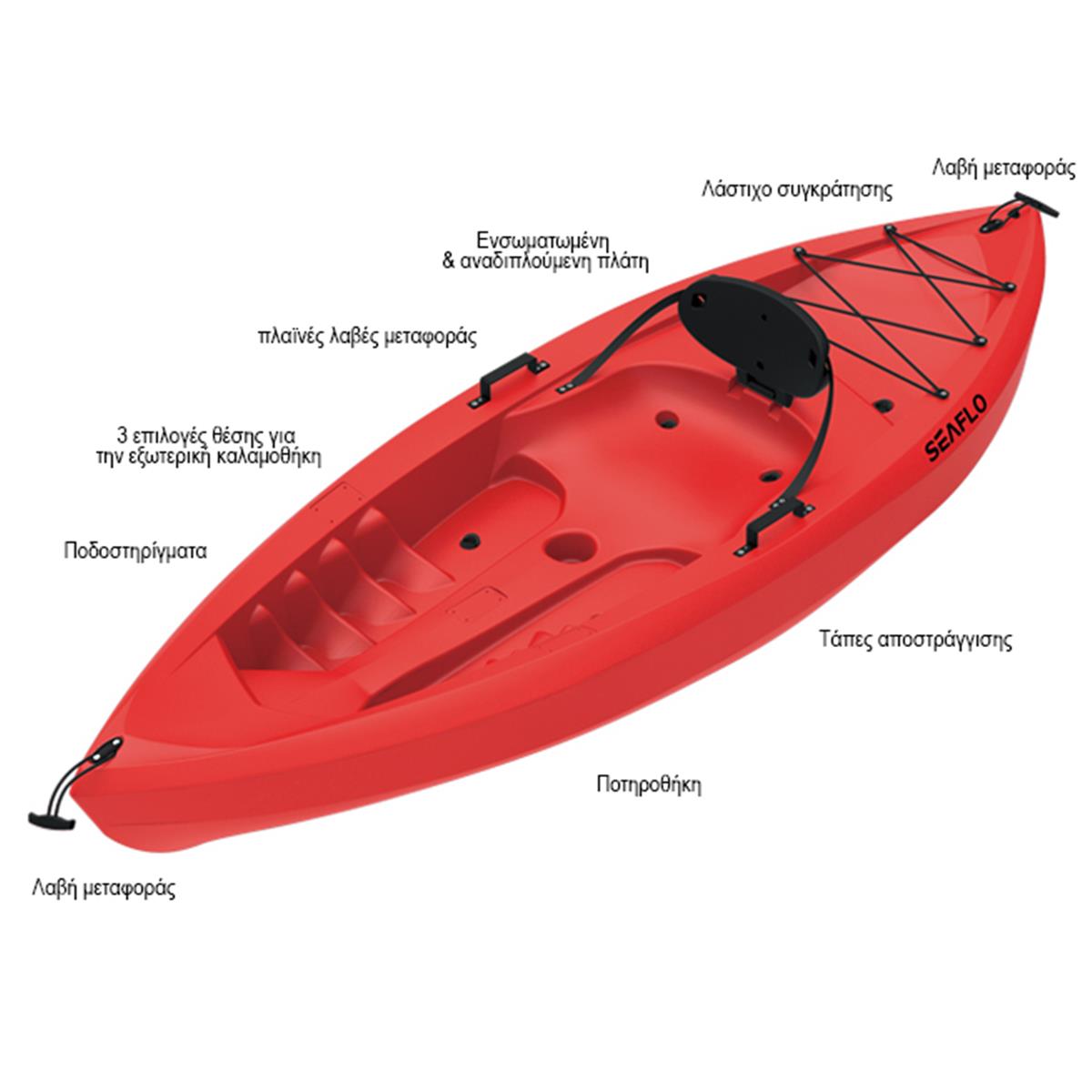 Το καγιάκ Seaflo Fat Boy είναι σχεδιασμένο για ένα ενήλικο άτομο. Είναι sit-on-top και ιδανικό για ευτυχισμένες οικογενειακές στιγμές. Χάρη στο μεγάλο του πλάτος είναι πολύ σταθερό. Κατασκευάζεται με την τεχνική blow-molded με υψηλής πυκνότητας πολυαιθυλένιο το οποίο το καθιστά γερό και ανθεκτικό στα χτυπήματα. Επίσης είναι ενισχυμένο με προστασία από την UV ακτινοβολία. Ελαφρύ, μικρό και ευέλικτο είναι τέλειο για να απολαύσετε ποιοτικό χρόνο στο νερό και ιδανικό για χαλαρές βόλτες σε ποτάμια, λίμνες και θάλασσες.