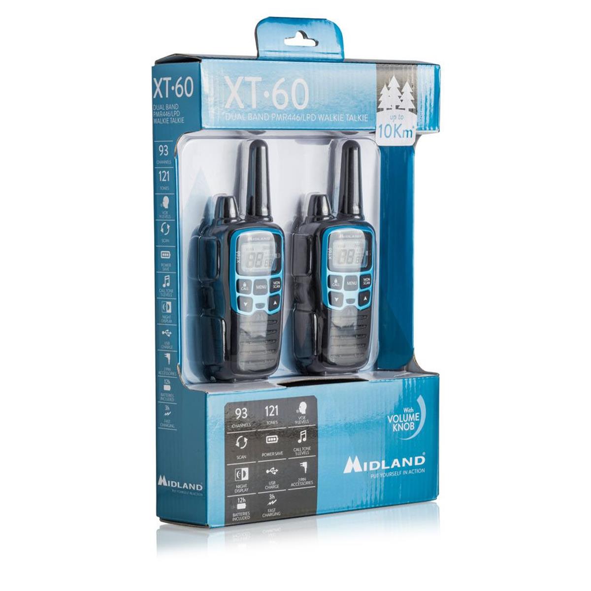 O Midland XT60 αποτελεί ένα πολύ καλό μοντέλο της νέας αναβαθμισμένης σειράς πομποδεκτών PMR446 XT LINE. Η XT LINE είναι αποτέλεσμα περισσότερων από 40 ετών εμπειρίας στον χώρο των ραδιο - επικοινωνιών και είναι σχεδιασμένη να κατακτήσει την αγορά και να ικανοποιήσει όλες τις ανάγκες του χρήστη. Με καινοτόμο σχεδιασμό και τεχνολογία υψηλής απόδοσης η XT line φέρνει την γρήγορη? φόρτιση με Micro USB στον κόσμο των walkie talkie PMR446. Στην παραλία, σε φεστιβάλ ή απλά σε κάθε μικρή σας καθημερινή περιπέτεια, o XT60 προσφέρει το τέλειο μέσο για να μένετε σε επαφή. Εξαιρετικά αξιόπιστος, ο XT60 είναι η ιδανική λύση για όσους θέλουν να συνομιλούν σε κάθε περίσταση, είτε επαγγελματική είτε στον ελεύθερο τους χρόνο. Επίσης είναι κατάλληλος για τους λάτρεις των extreme sports που χρειάζονται μία αμφίδρομη επικοινωνία στις περιπέτειές τους. Με εμβέλεια μέχρι και 10km, αποτελεί το απόλυτο αξεσουάρ για όποιον αγαπάει πραγματικά την περιπέτεια, το στιλ και την απλή επικοινωνία.