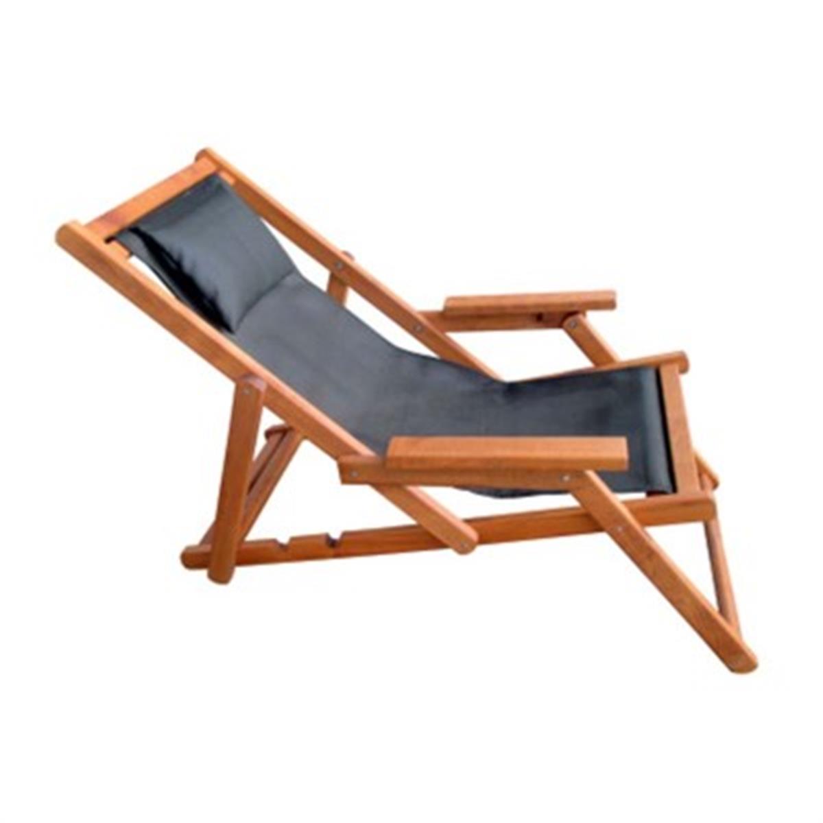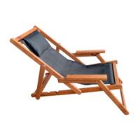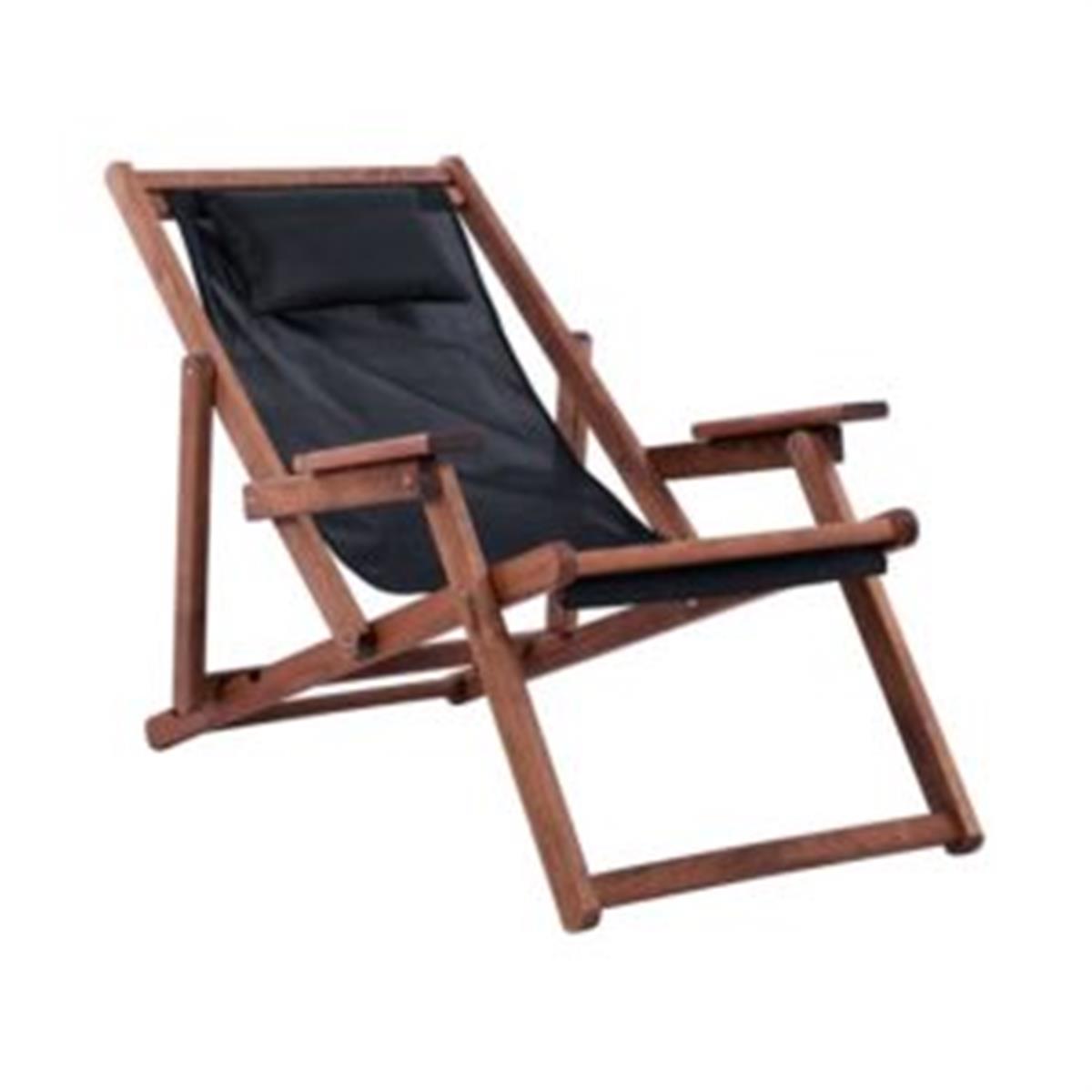 Σεζλόνγκ με μπράτσα 3 θέσεων, πτυσσόμενη, σε φυσική απόχρωση και πανί PVC σε μαύρη απόχρωση.